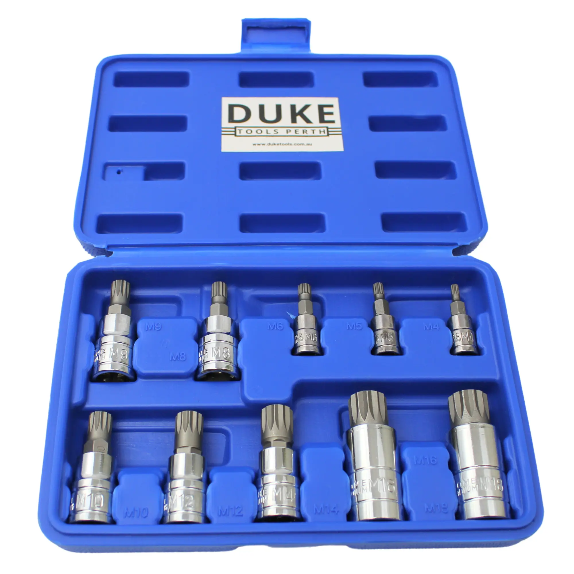 DUKE Tools 1/4″, 3/8″ & 1/2″ Drive Spline Bit Socket Set 10 Pcs M4-M18 Tamperproof Socket Bit