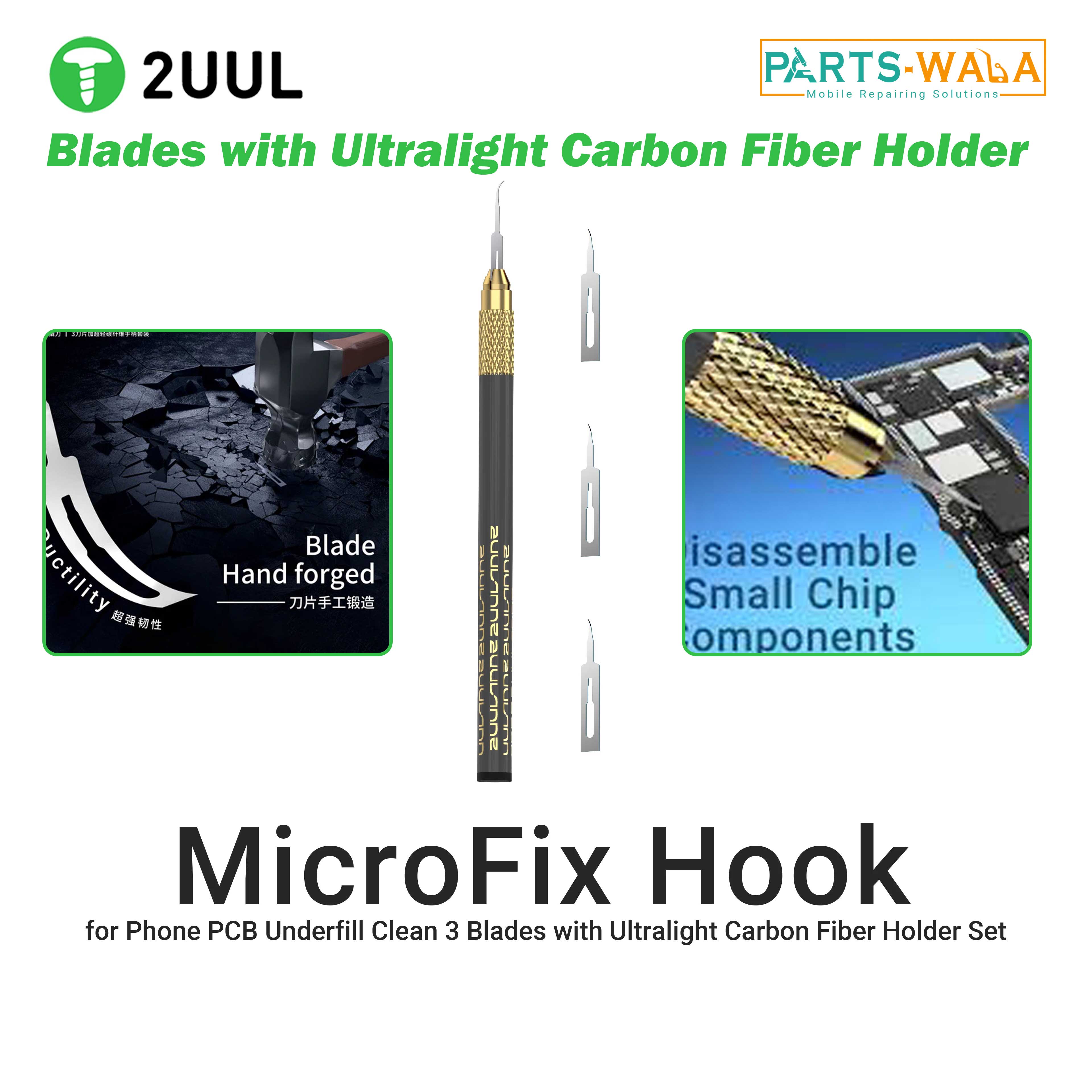 2uul DA12 MicroFix Hook for Phone PCB Underfill Clean 3 Blades